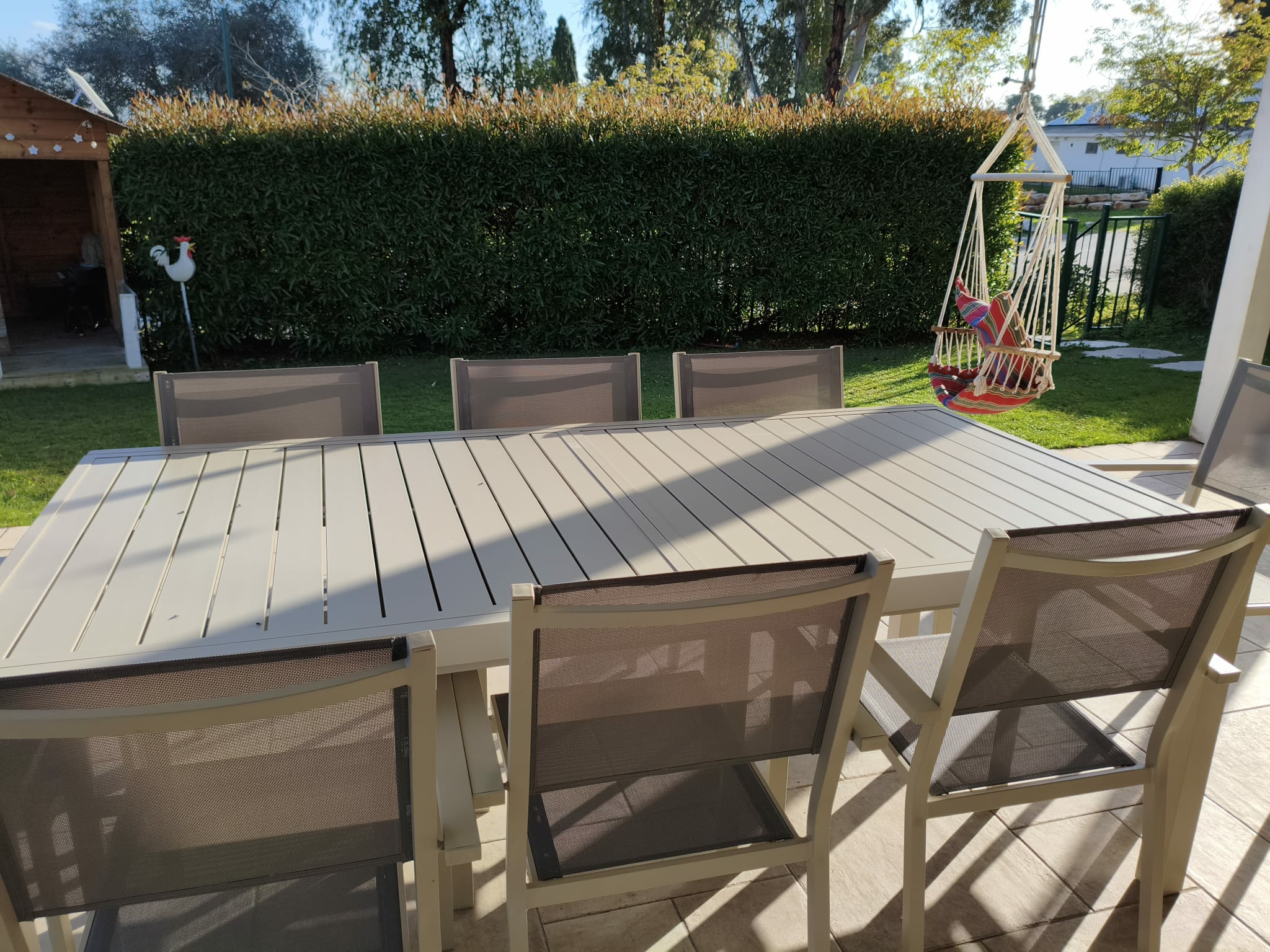 שולחן אלומיניום איכותי עם מנגנון פתיחה חכם, עיצוב מודרני ועמידות גבוהה לכל מזג אוויר